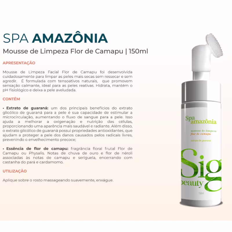 Não sei o CEPMousse de limpeza facial flor de camapu foi desenvolvida cuidadosamente para peles sensíveis, capaz de limpar as peles mais secas sem ressecar e sem agredir. É formulada com tensoativos naturais, que promovem sensação calmante, ideal para peles reativas. Hidrata, mantém o pH fisiológico e dexa a pele aveludada.
