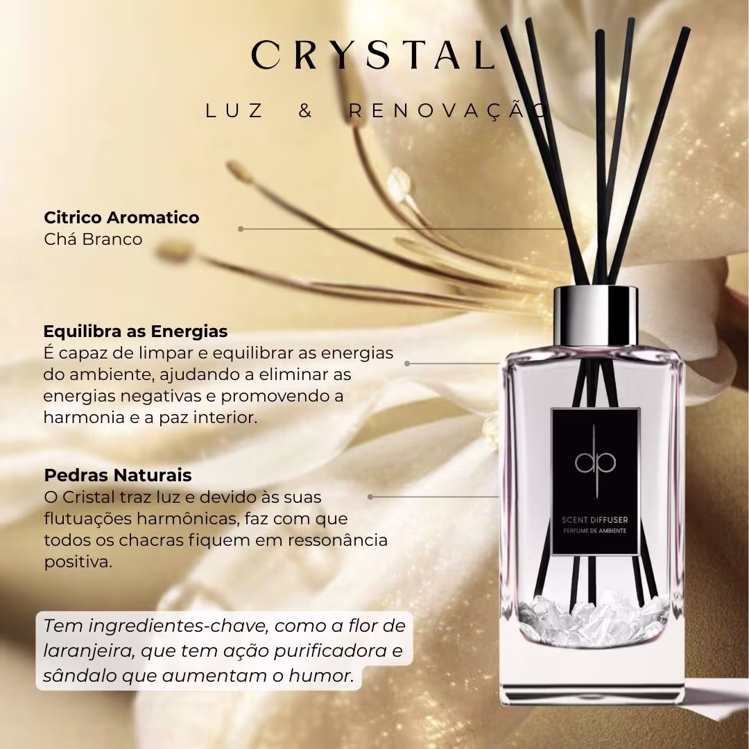 Difusor de Ambiente Crystal – 250 ml: perfumação contínua com notas frescas e elegantes, ideal para manter o lavabo sempre cheiroso e acolhedor.