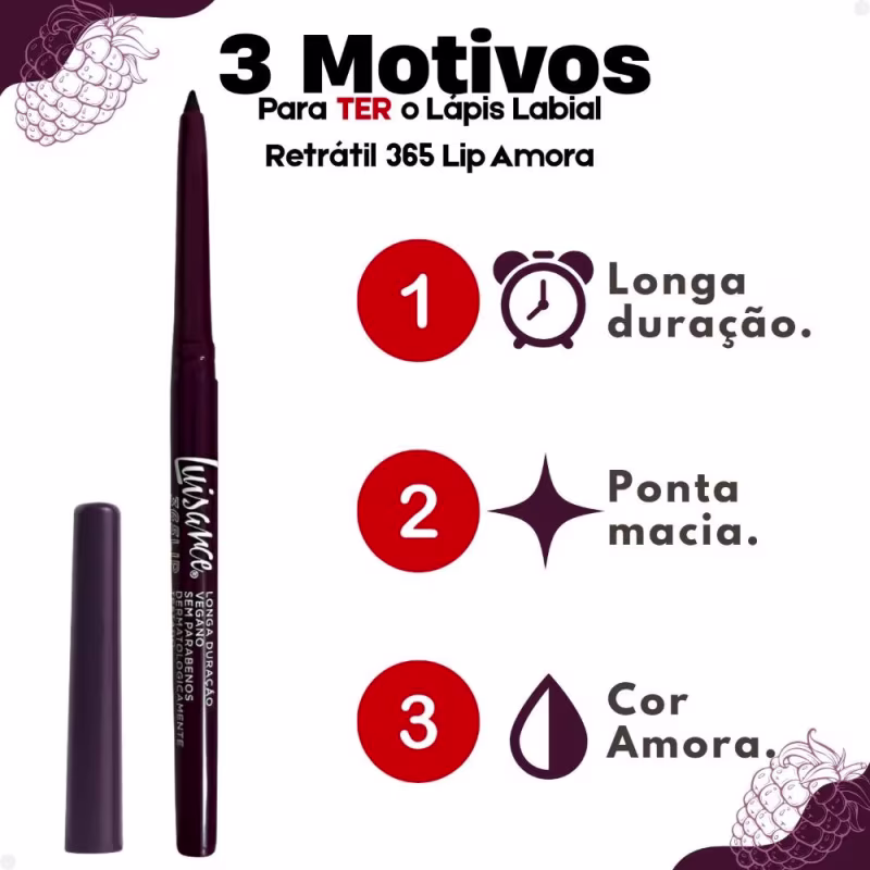 Realce seus lábios com a intensidade e sofisticação do Lápis Labial Retrátil Luisance 365 Lip Amora. Com seu tom profundo e vibrante de amora, este lápis proporciona uma aplicação cremosa e uniforme, que desliza suavemente para um acabamento perfeito. O mecanismo retrátil facilita o uso, dispensando apontador e permitindo retoques práticos em qualquer lugar. Ideal para contornar e preencher os lábios, ele valoriza o formato natural e garante uma cor intensa e duradoura, perfeita para ocasiões especiais ou para o dia a dia. Complete sua maquiagem com o toque elegante e marcante do Lip Amora.