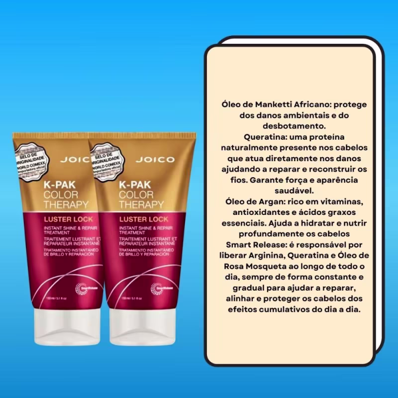 Contém:02 Unidades Joico K-PAK Color Therapy Luster Lock Máscara Capilar 150ml