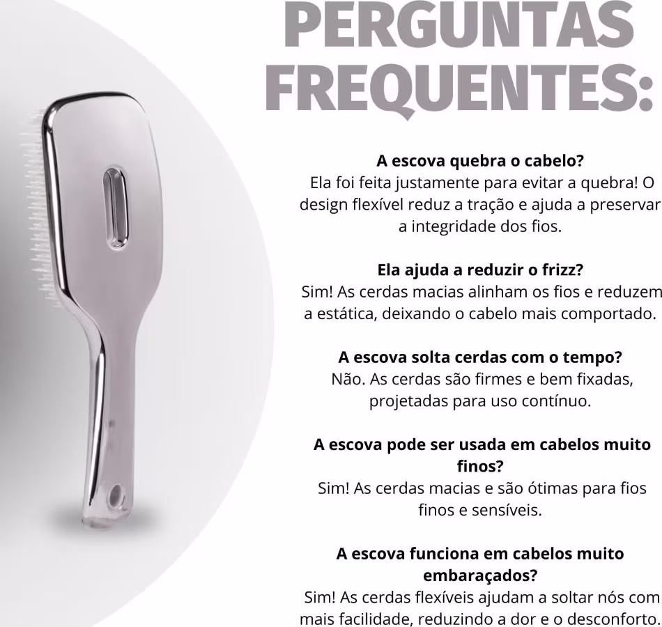 Para melhores resultados, utilize a Escova Ricca Flex Premium em cabelos secos ou úmidos. Comece desembaraçando as pontas e, em seguida, avance para a raiz, deslizando a escova suavemente pelos fios. O design flexível da escova se adapta ao formato da sua cabeça, proporcionando um pentear confortável e eficiente. Use diariamente para manter seus cabelos desembaraçados, macios e com brilho.