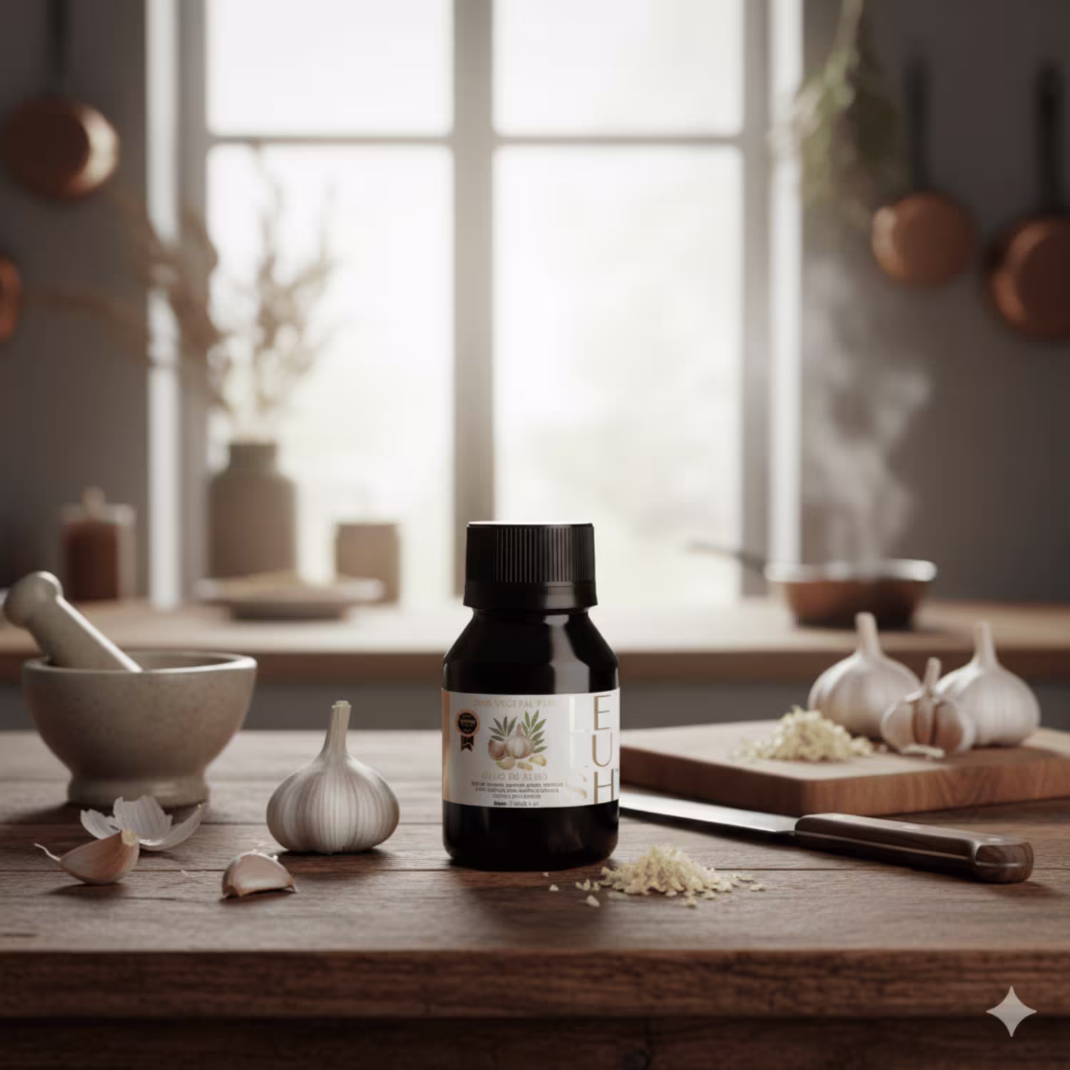 Vitaminas C, B6 e E → fortalecem os fios e protegem contra danos externos.Alicina e enxofre → ação antimicrobiana natural que auxilia no controle da caspa e oleosidade.Ácidos graxos essenciais → nutrem e fortalecem profundamente.