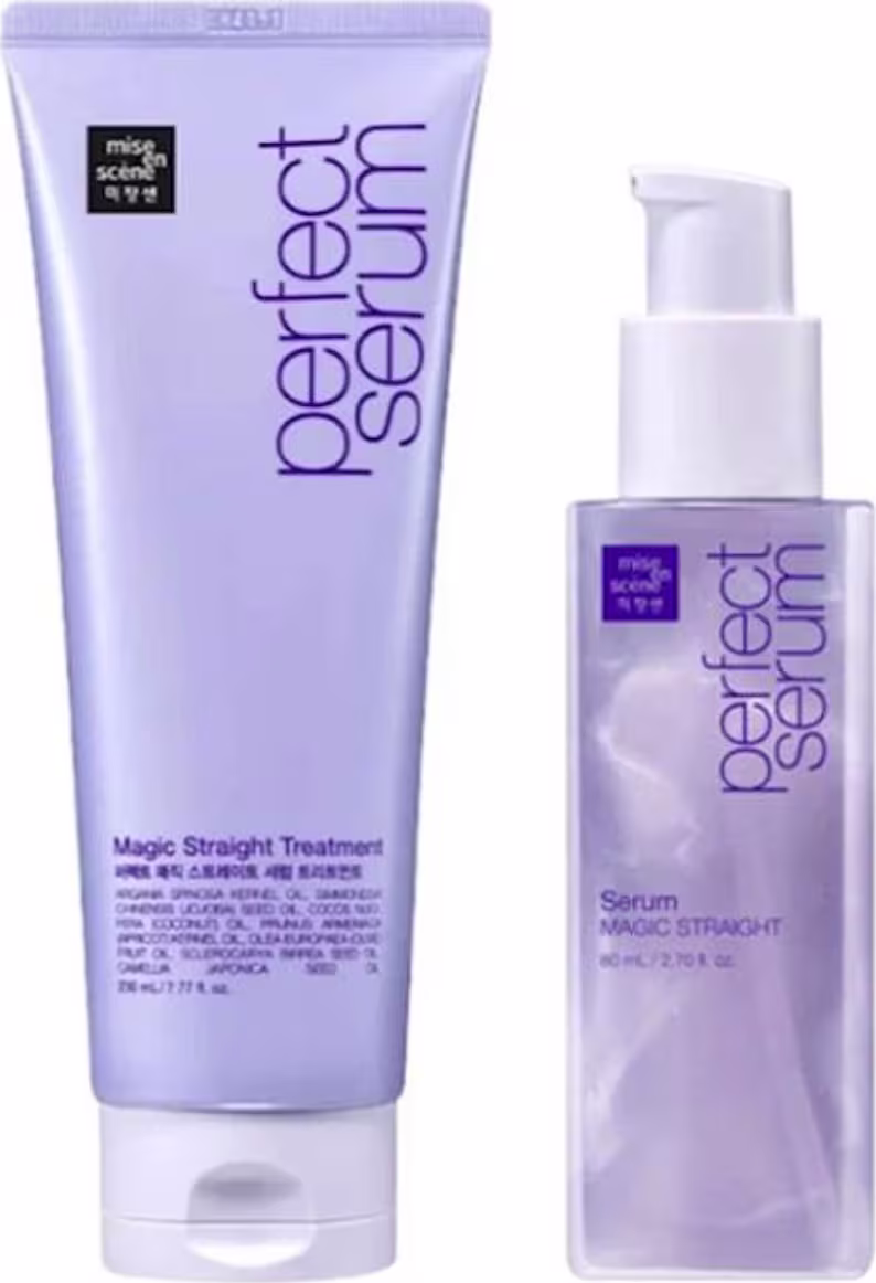 Mise en Scène Perfect Serum Magic Straight Kit (Tratamento 230ml + Sérum 80ml)Descubra o segredo para cabelos lisos, controlados e incrivelmente brilhantes com o Kit Perfect Magic Straight da Mise en Scène!