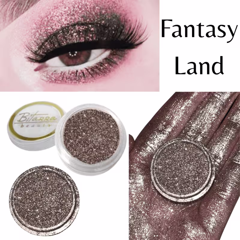 Sombra asa de borboleta pigmento e glitter cor Fantasyland - Bitarra Beauty microparticulas em po com alta pigmentação e brilho para sua maquiagem