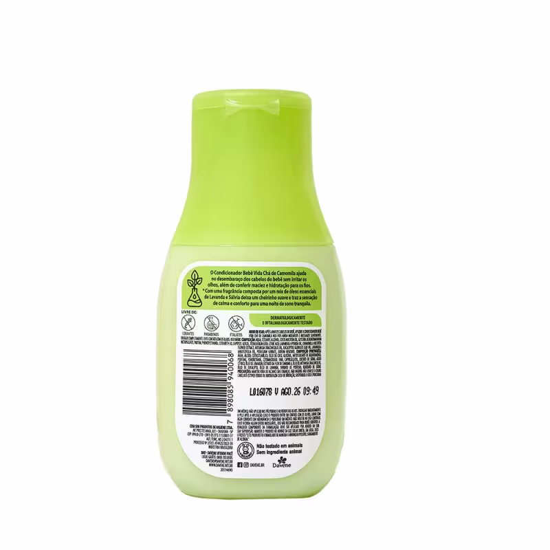 O Condicionador Bebê Vida Chá de Camomila 200ml da Davene é a escolha ideal para proporcionar cuidado, hidratação e conforto aos cabelos do bebê, garantindo um toque de suavidade e frescor em cada aplicação.