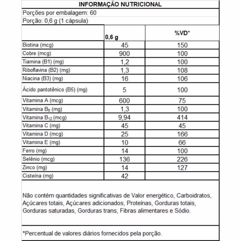 Para quem é indicado:Indicado para homens e mulheres adultos que buscam mais energia, saúde e beleza de forma prática. Ideal para quem lida com cansaço, unhas frágeis, cabelos quebradiços ou pele opaca. Pode ser usado como cuidado preventivo ou como reforço em fases de maior estresse físico ou emocional.