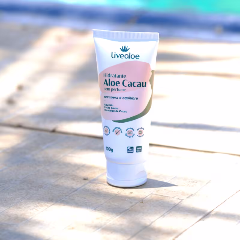 O Hidratante Aloe Cacau tem fórmula sem perfume, ideal para peles intolerantes a óleos essenciais/fragrâncias. É rica em plantas de cultivo orgânico, como Aloe vera, Aquiléia, Folha Santa e Beldroega, além de contar com óleos e manteigas nutritivas, como a manteiga de cacau e o óleo de gergelim, que conferem maciez e flexibilidade à pele.