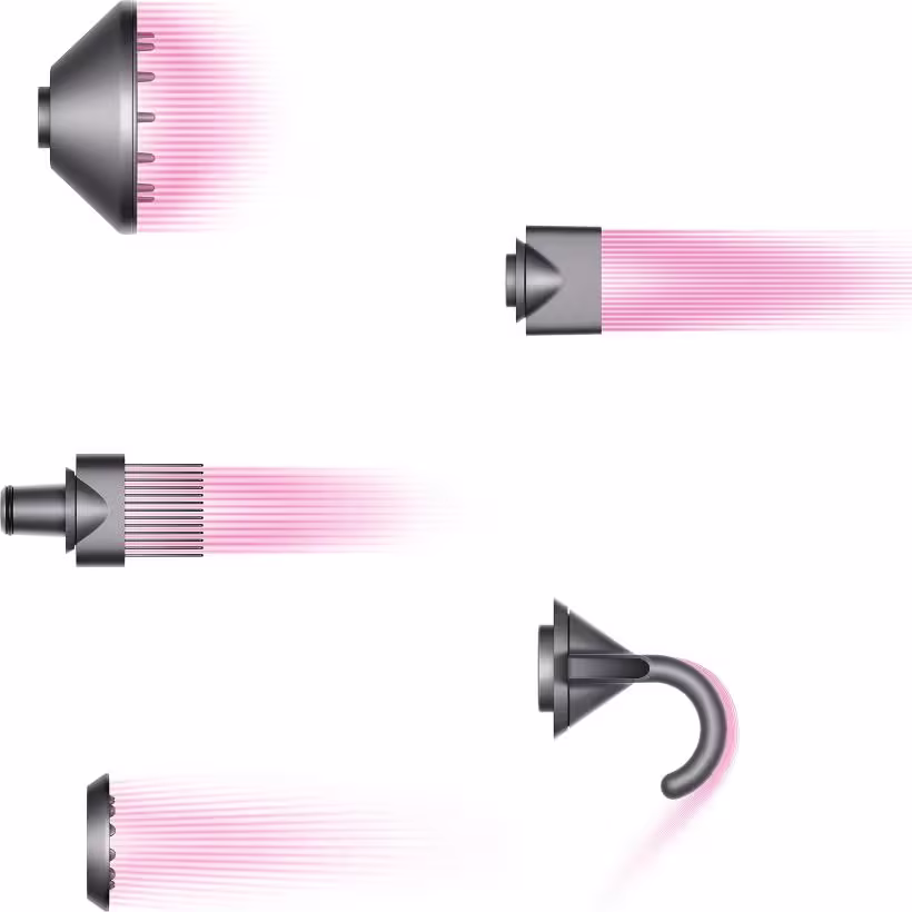 O secador de cabelo Dyson Supersonic™ vem com acessórios magnéticos para modelagem. Para fácil ajuste e rotação durante o penteado.