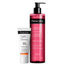 Não sei o CEPGel de limpeza com 9,5% de mix de tensoativos, 30% de glicerina e 1% de extrato de algodão, melhora da hidratação, maciez e viço. Indicado para peles sensíveis. Protetor solar fluido antioleosidade com 16,5% de filtros UV e 5% de niacinamida, FPS 99, toque seco e eficácia contra raios UVA e UVB.
