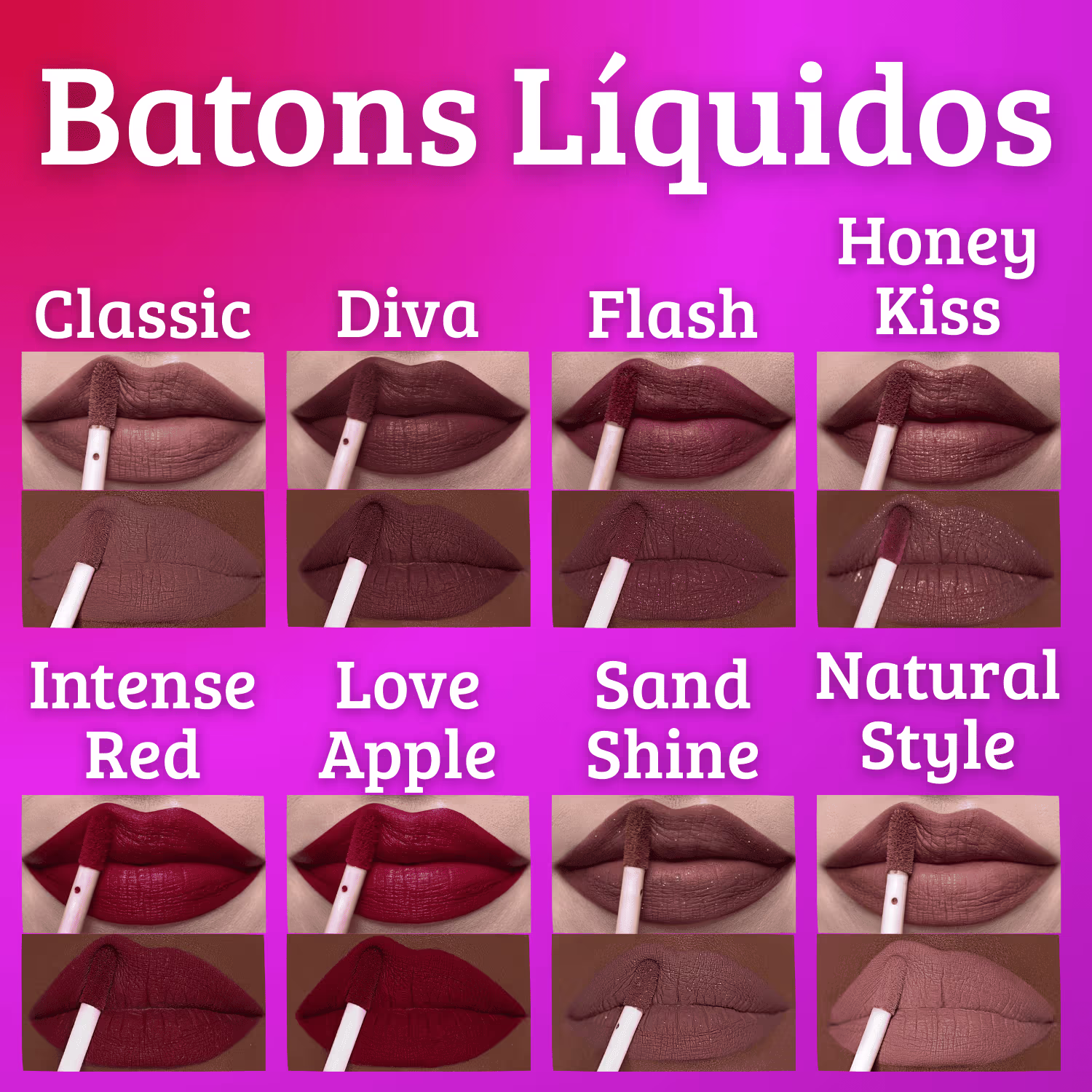 Cada aplicação desliza suavemente pelos lábios, proporcionando cor intensa e uniforme com efeito matte sofisticado. Do clássico ao ousado, escolha entre as tonalidades: Classic, Diva, Flash, Honey Kiss, Intense Red, Love Apple e Sand Shine.