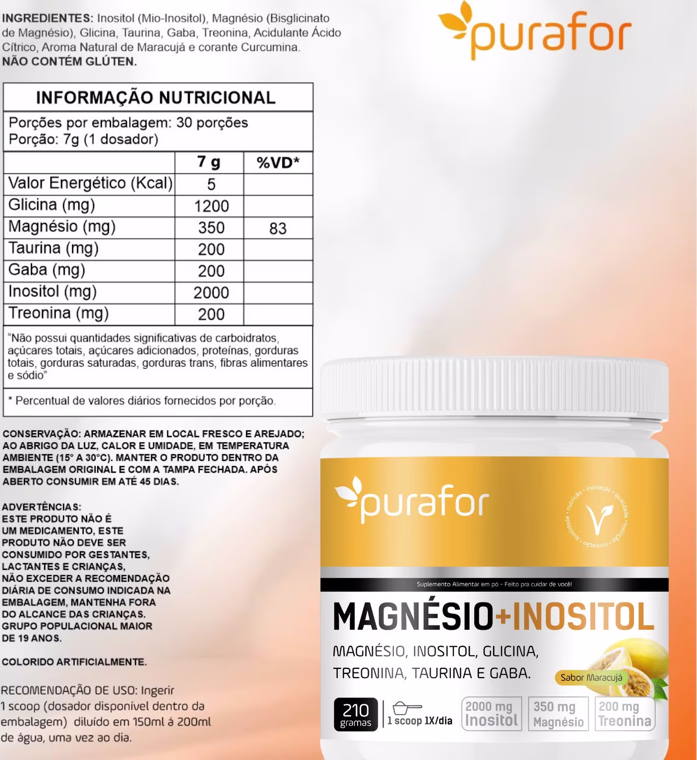 Ingredientes: Magnésio, Inositol, Glicina, Taurina, Treonina, GABA, aroma idêntico ao natural de maracujá.