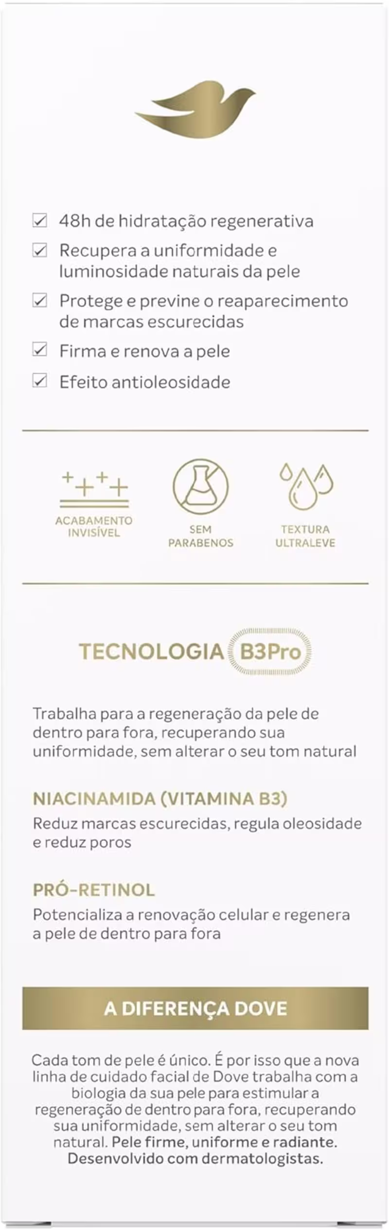 Dove Regenerative Tratamento Facial 3 Em 1 Sérum Iluminador, Hidratante E FPS 30 50ml Com Ação Antissinais