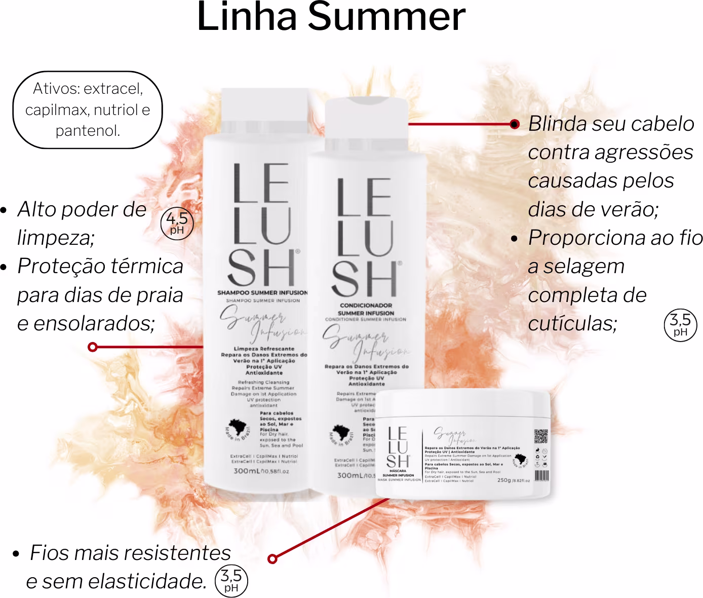 Kit Shampoo, Máscara, Condicionador Summer Infusion Sol Mar Piscina LELUSH Ver mais ❯