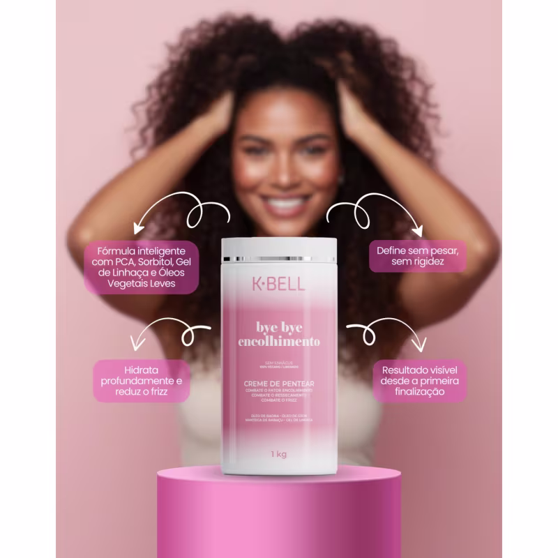 O Creme de Pentear K.Bell Bye Bye Encolhimento foi desenvolvido especialmente para combater o encolhimento natural dos cabelos cacheados e crespos, ajudando a revelar o comprimento real dos fios sem comprometer a definição. Sua ação sem enxágue promove alinhamento e disciplina, deixando os cachos mais alongados, soltos e com movimento natural.