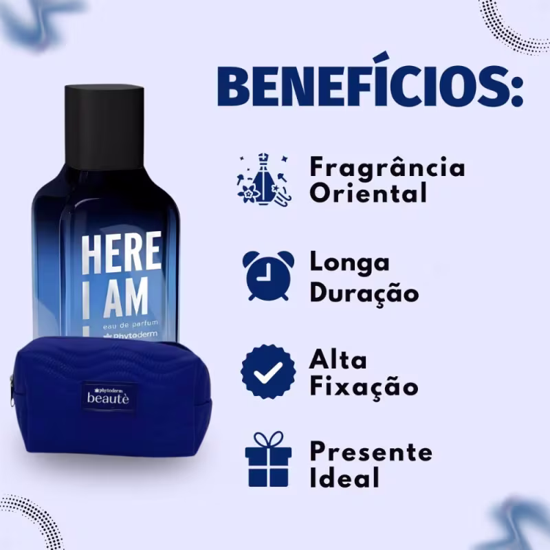 Benefícios PrincipaisO Perfume Phytoderm Here I Am Eau de Parfum é perfeito para diversas ocasiões, desde o ambiente de trabalho, encontros sociais e eventos noturnos, até momentos de lazer. Sua versatilidade permite que seja usado tanto durante o dia, para uma presença marcante, quanto à noite, para um toque de elegância e sofisticação.