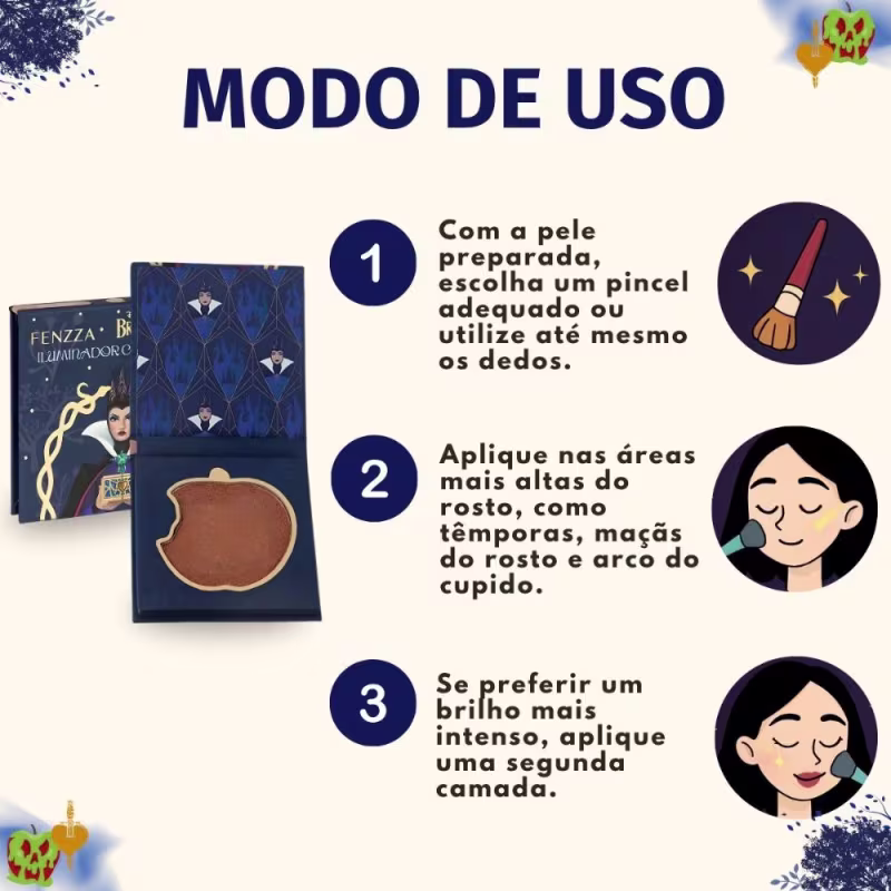 O Iluminador Compacto Fenzza Disney Branca De Neve Forest Gleam Dis234 é ideal para diversas ocasiões, desde o uso diário para um toque de luminosidade natural até eventos especiais, festas temáticas ou produções de maquiagem mais elaboradas. Perfeito para quem deseja um visual mágico e radiante em qualquer momento, seja para um encontro casual, uma noite de gala ou para se sentir como a realeza em seu dia a dia.