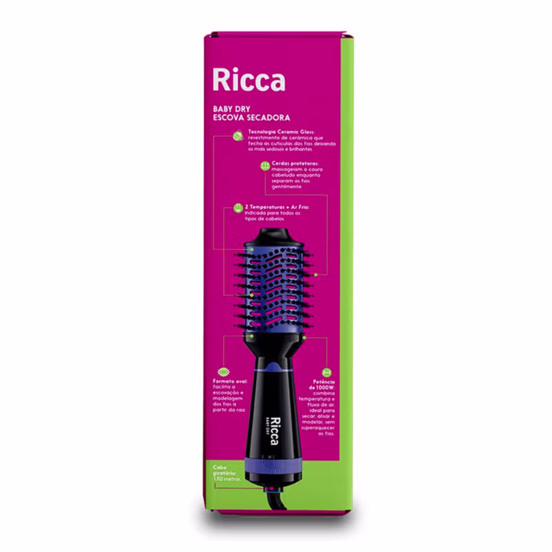 Ricca Baby Dry Escova Secadora (3 em 1: Seca, Alisa e Modela)A Ricca oferece uma linha principal de... Ver mais ❯