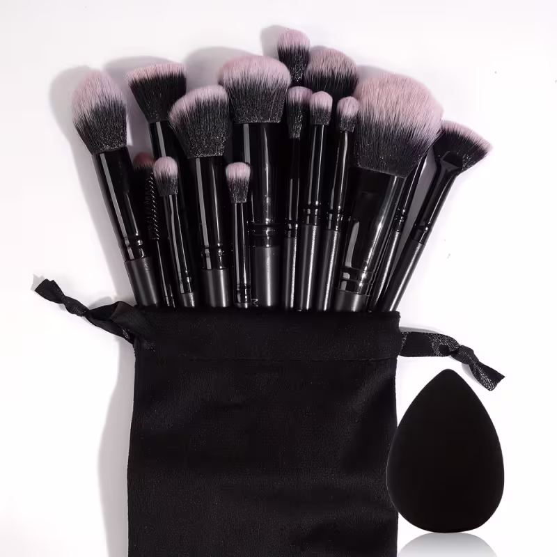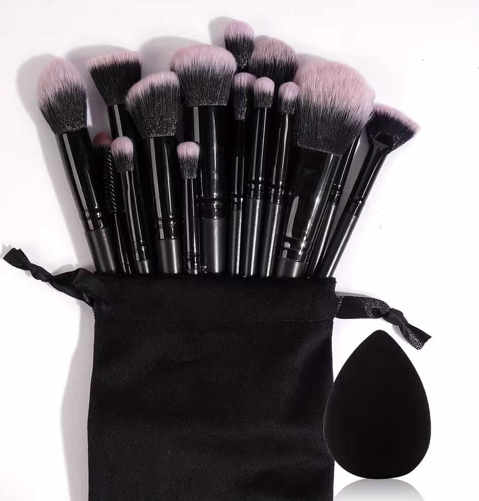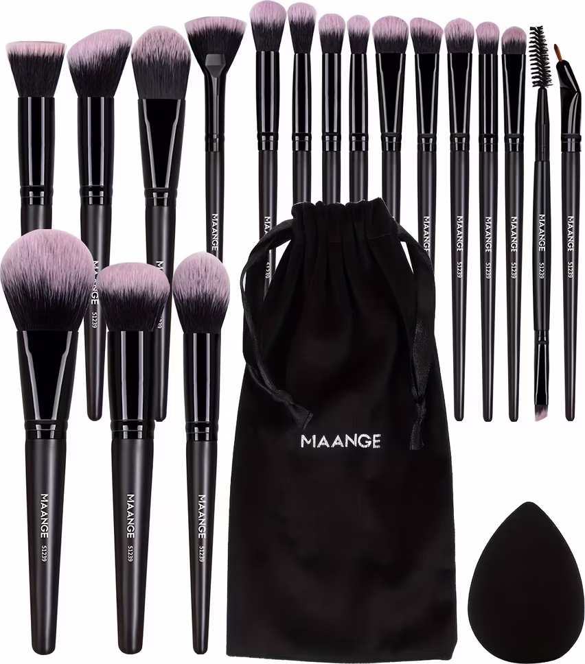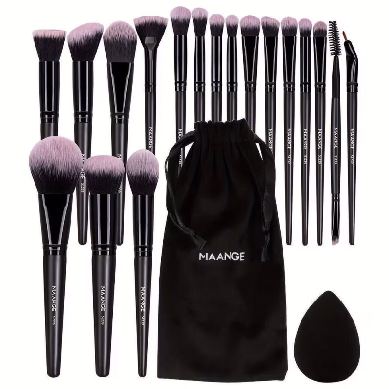 Kit Profissional MAANGE 20 Pincéis de Maquiagem Bolsa Veludo e Esponja Preto
