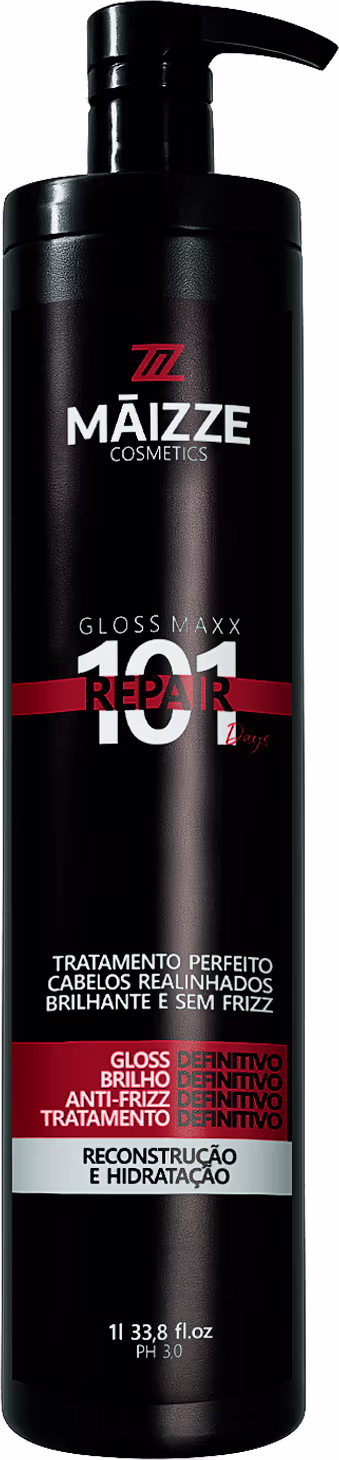 Não sei o CEPO GLOSS MAXX REPAIR MAIZZE enriquecido com ativos que, reduz o volume, reconstrói e hidrata profundamente sem causar nenhum dano aos cabelos. Sua formula é de fácil aplicação o que garante ótimo rendimento, deixando os cabelos lisos, reconstruídos e hidratados.
