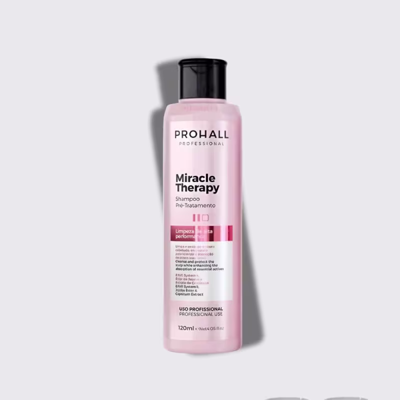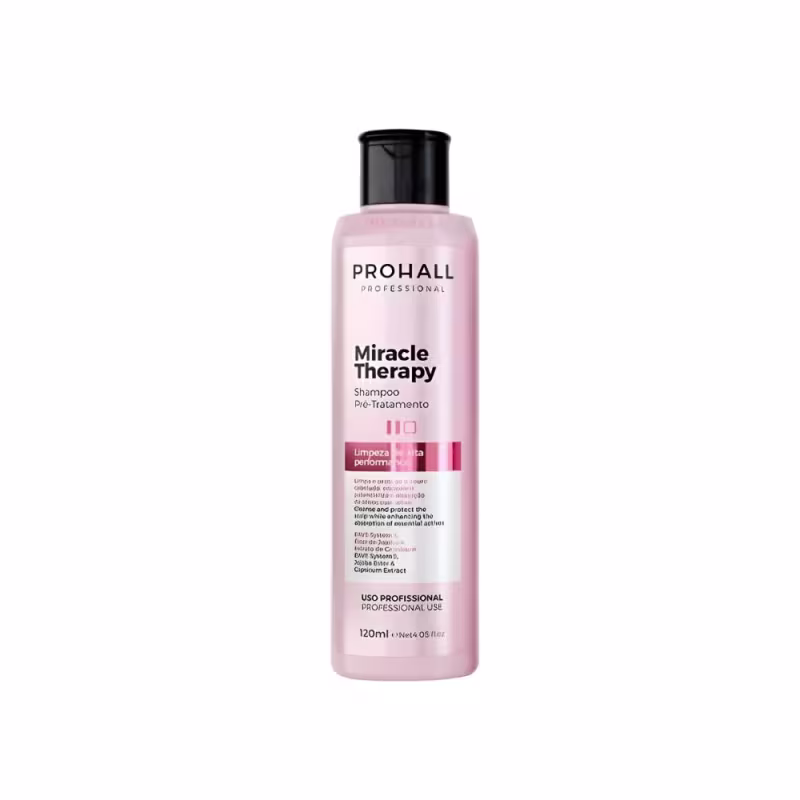Não sei o CEPO Prohall Shampoo Miracle Therapy 120 ml foi desenvolvido para limpar suavemente os fios enquanto prepara a fibra capilar para receber tratamentos hidratantes e reconstrutores. Sua fórmula nutritiva remove impurezas sem agredir, deixando o cabelo leve, macio e com brilho natural. Ideal para uso diário e para manter a saúde capilar em dia.