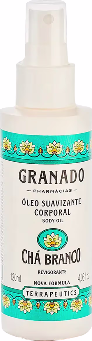 Não sei o CEPO Óleo Corporal Chá Branco Granado protege, nutre e ajuda a prevenir o ressecamento da pele, proporcionando toque macio, hidratação intensa e uma fragrância delicada de chá branco.