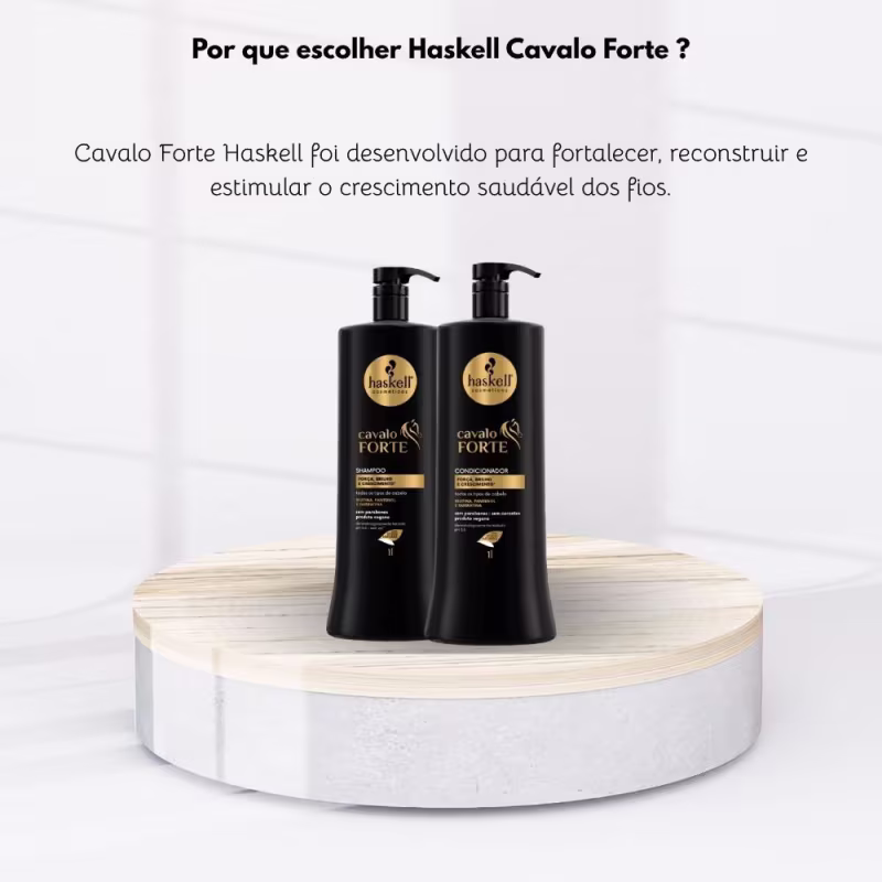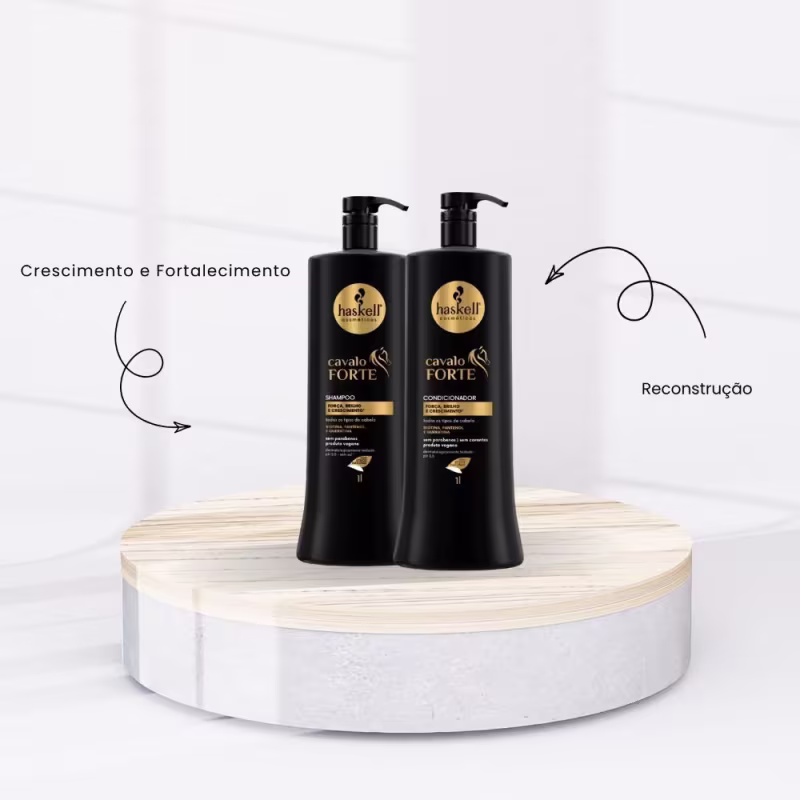 Não sei o CEPO Kit Haskell Cavalo Forte Shampoo e Condicionador 1000ml foi desenvolvido para promover força, crescimento saudável e brilho intenso aos fios. Sua fórmula concentrada age desde a raiz até as pontas, reduzindo a quebra e revitalizando a fibra capilar. Ideal para quem busca cabelos mais resistentes, encorpados e com aparência saudável.
