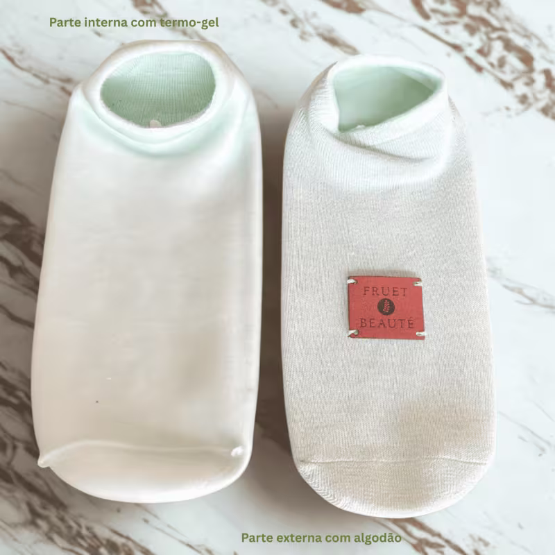 Seu design anatômico envolve os pés de forma confortável, ajudando a manter a temperatura ideal por mais tempo e favorecendo a absorção de cremes e ativos. Ideal para quem busca pés macios, descansados e profundamente cuidados, a sapatilha de gel térmico Fruet Beauté une praticidade, conforto e resultados visíveis desde o primeiro uso.
