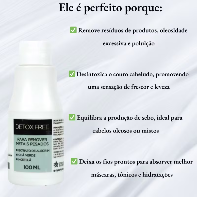 O Shampoo Detox Free Dyusar limpa profundamente o couro cabeludo, eliminando impurezas e toxinas sem agredir os fios. Ideal para quem busca uma rotina capilar mais saudável e equilibrada.