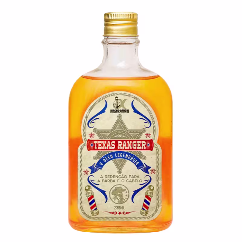 O Óleo Macho-Lândia Texas Ranger complementa o tratamento com uma combinação exclusiva de 7 óleos poderosos — Cravo da Índia, Café Verde, Cedro, Buriti, Argan, Espinheiro Marítimo e Oliva — que promovem nutrição intensa, hidratação profunda, controle do frizz e proteção dos fios. O óleo deixa os fios disciplinados, cheirosos, saudáveis e com brilho autêntico.