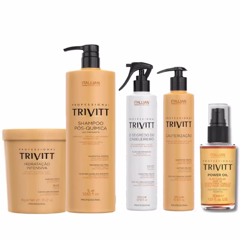 Não sei o CEPItallian Trivitt Kit Profissional é ideal para o tratamento de cabelos quimicamente tratados por proporcionar hidratação profunda, cauterização dos fios e a reconstrução das áreas danificadas, fortalece os fios para que eles recuperem a resistência contra quebra, o brilho e o sensorial macio.
