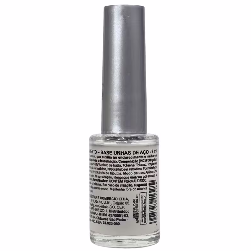 Modo de Uso: Aplique uma camada fina da Base sobre as unhas limpas e secas, evitando o contato com as cutículas para não endurecê-las. Não utilize sobre cutículas lesionadas, pois pode causar ardência. Deixe secar completamente antes do esmalte e utilize no máximo 1 vez por semana ou a cada 15 dias.