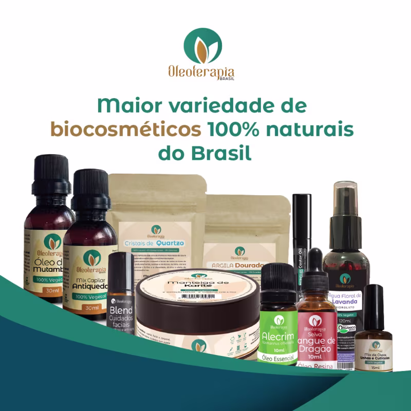 A Oleoterapia Brasil é uma marca de biocosméticos com ingredientes 100% naturais e de alta qualidade de pureza. Maior linha de óleos e manteigas vegetais para pele, cabelo e corpo. Além de argilas, hidrolatos, linha exclusiva de mix, spa da pele, saboaria e óleos essenciais. Os produtos da Oleoterapia Brasil são versáteis, podem ser utilizados como óleos de massagem, hidratantes corporais, capilares e faciais, tônicos e rejuvenescedores, usados para o tratamento e nutrição do couro cabeludo, cabelos, pele, sobrancelhas, cílios, e unhas, proporcionando inúmeros benefícios quando utilizados em sua forma 100% pura, apresentando inúmeras vantagens em relação aos princípios ativos sintéticos largamente utilizados pela indústria cosmética.