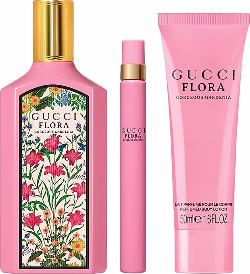 O Kit Gucci Flora Gorgeous Gardenia Eau de Parfum reúne a fragrância icônica em tamanho full, travel size portátil e body lotion perfumada, perfeita para a mulher alegre e radiante que busca um aroma floral gourmand com gardênia exuberante e doçura delicada. Com camadas de pera suculenta e açúcar mascavo que envolvem jasmim solar, ele transforma a rotina em uma celebração de alegria e feminilidade, criando uma conexão emocional de empoderamento e bem-estar que desperta elogios e confiança radiante em cada aplicação.