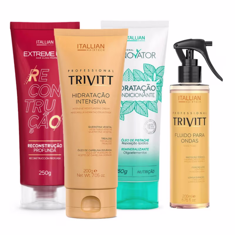 Kit Cronograma Capilar com Fluido para Ondas – Reconstrução, Hidratação, Nutrição e Proteção Térmica