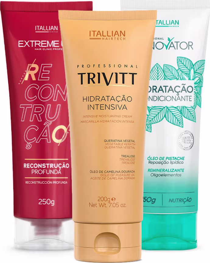 Itallian Trivitt Cronograma Capilar + Proteção Térmica, Brilho Intenso e Fixação Completo (6 itens)
