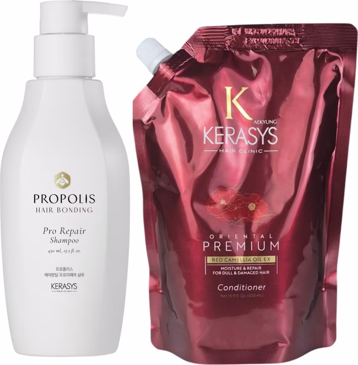 Kerasys Kit (Sh Própolis Repair 450ml + Cond. Oriental Premium 500ml - REFIL)Kit de Hidratação intensa e reparação avançada dos fios danificados.