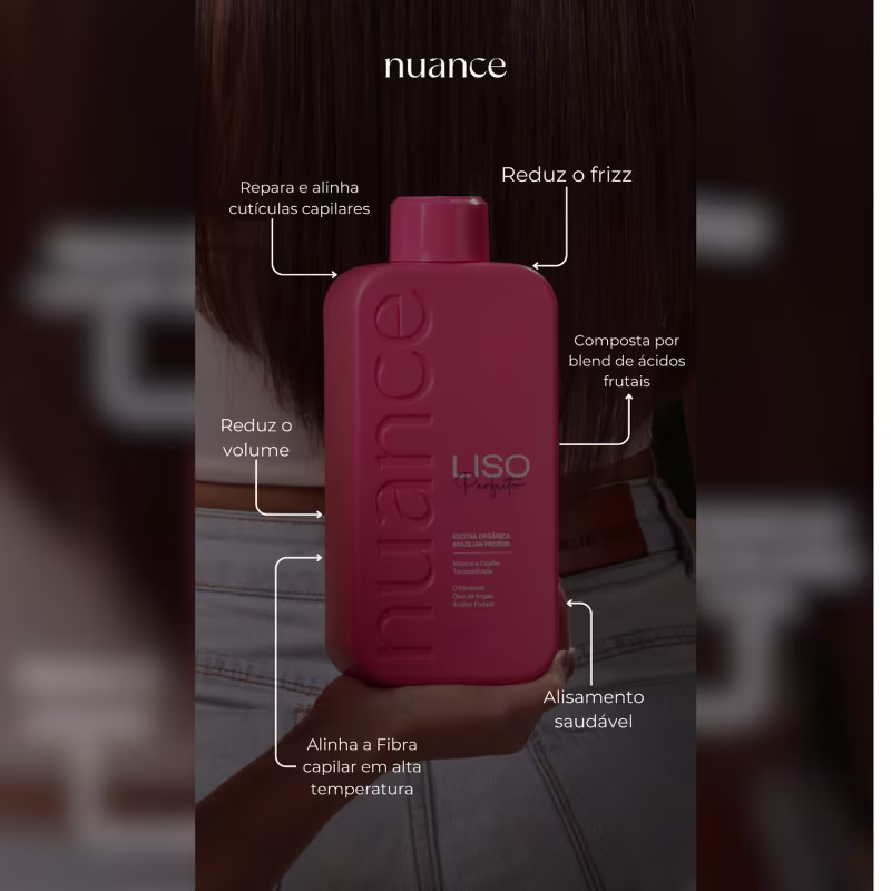 A Escova Progressiva Selagem Orgânica Liso Perfeito da Nuance é a solução ideal para quem deseja um cabelo liso, saudável e com brilho intenso, sem abrir mão de um tratamento orgânico e seguro. Com uma fórmula inovadora e livre substancias nocivas, o produto é indicado para todos os tipos de cabelos. Proporciona um alisamento eficaz e duradouro, respeitando a saúde capilar e o bem-estar do couro cabeludo.