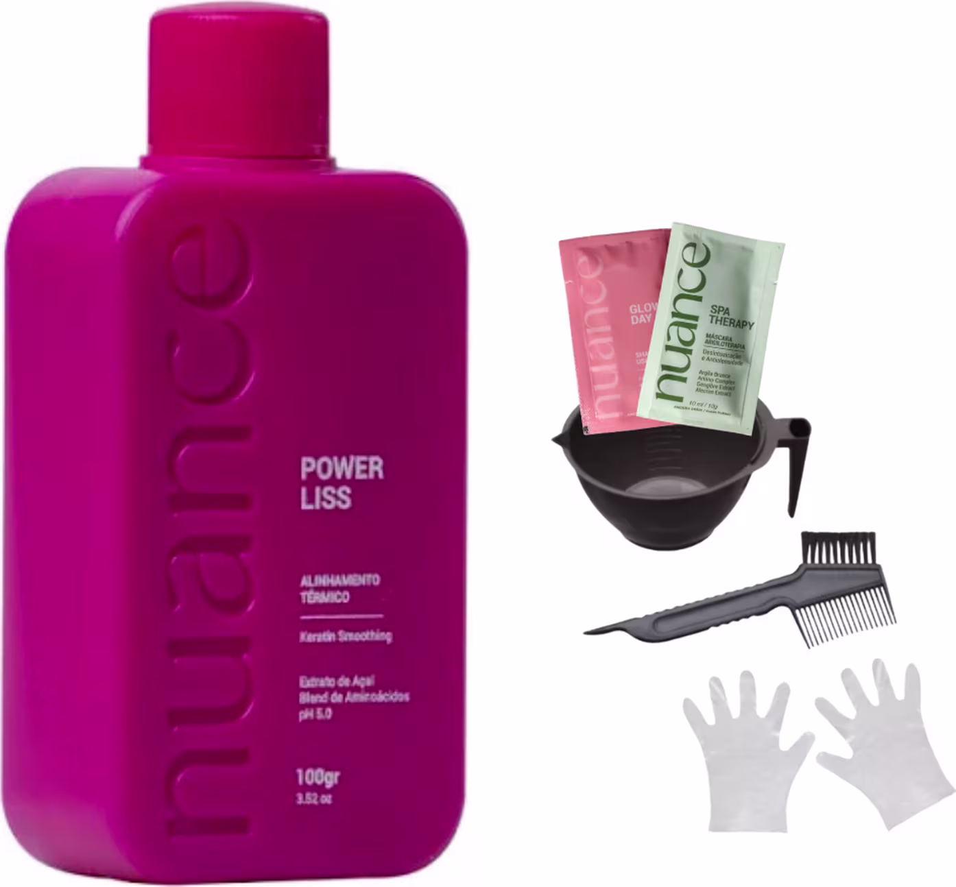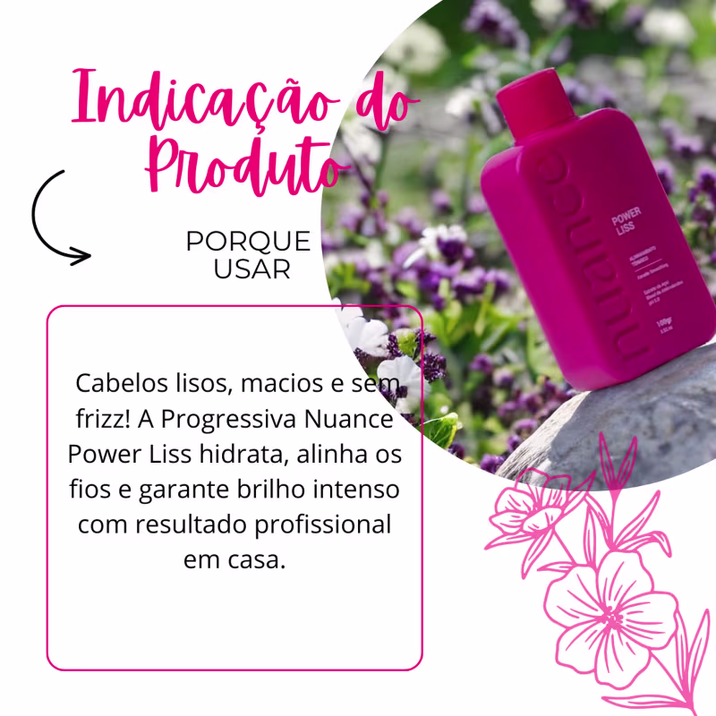 A Nuance Professional Power Liss é uma escova progressiva desenvolvida para promover o liso perfeito, brilho radiante e maciez desde a primeira aplicação. Com fórmula livre de agentes agressivos, trata os fios enquanto alisa, garantindo um resultado profissional com praticidade e segurança. Sua composição rica em ativos hidratantes e nutritivos proporciona um cabelo saudável, alinhado e com movimento natural.