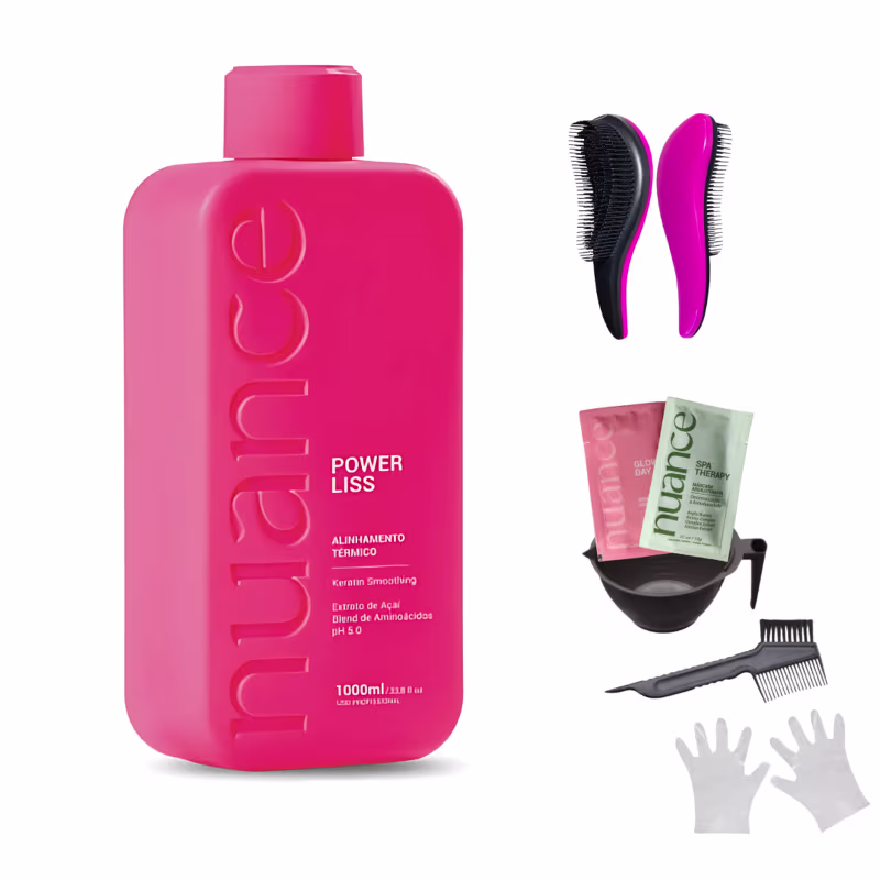 A Nuance Professional Power Liss é uma escova progressiva desenvolvida para promover o liso perfeito, brilho radiante e maciez desde a primeira aplicação. Com fórmula livre de agentes agressivos, trata os fios enquanto alisa, garantindo um resultado profissional com praticidade e segurança. Sua composição rica em ativos hidratantes e nutritivos proporciona um cabelo saudável, alinhado e com movimento natural.