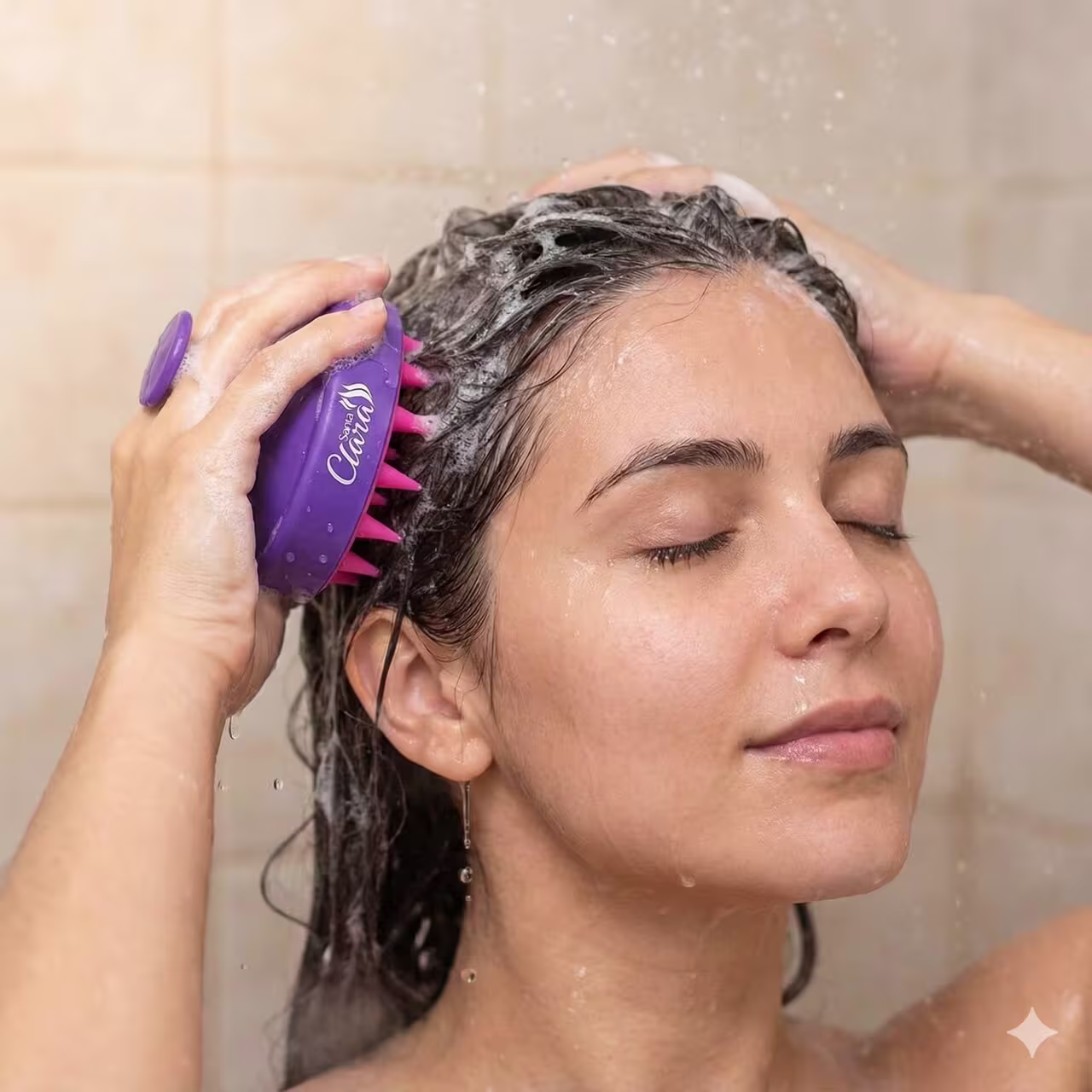 Acessório: A escova estimula a circulação e auxilia na limpeza profunda.
