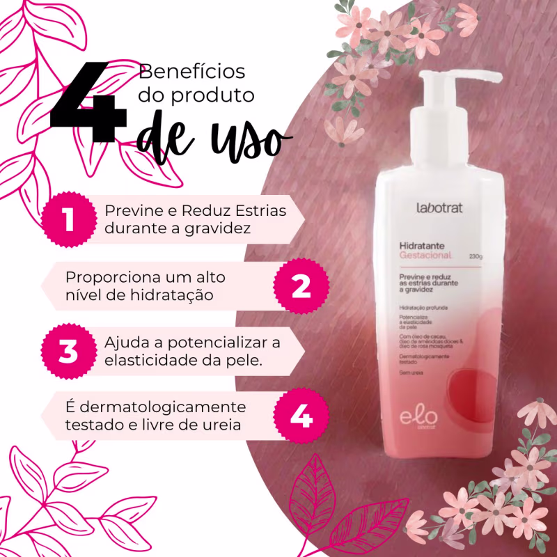 O presente ideal para o autocuidado da futura mamãe. Este kit combina a proteção intensa do Hidratante Gestacional Elo, que previne estrias, com o frescor do Body Splash Labpop Green Breeze, que deixa a pele perfumada e com um leve brilho (efeito shimmer).
