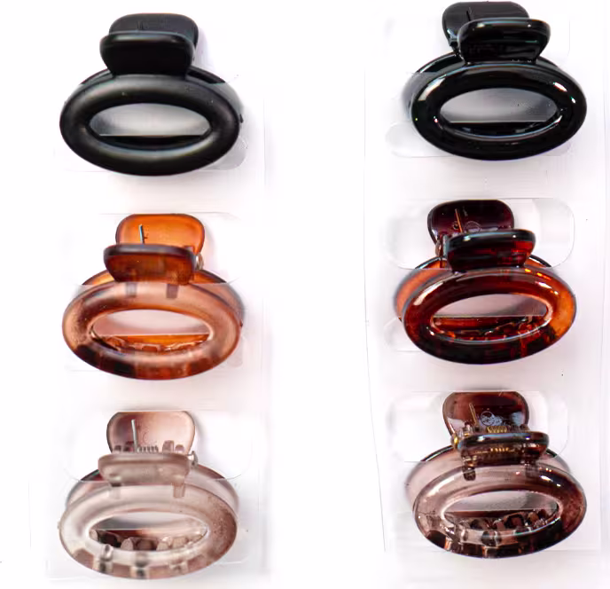 As piranhas ovais possuem um design vazado que adiciona um toque moderno, ao mesmo tempo que proporciona uma fixação firme e confortável, sem danificar os fios. Disponíveis em tons clássicos de preto e marrom, elas se adaptam facilmente a qualquer estilo e ocasião, do casual ao formal.
