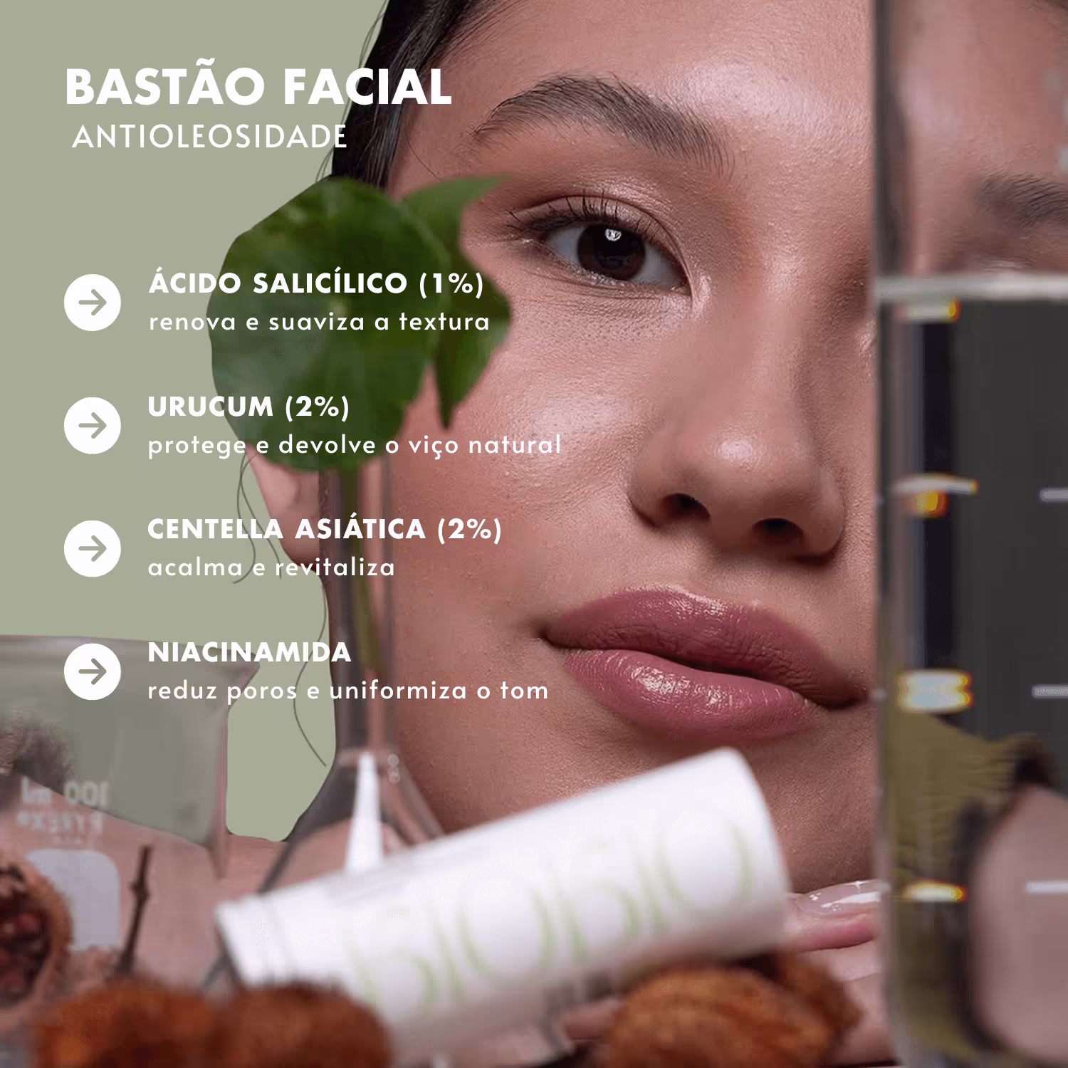 Com ativos potentes como Ácido Salicílico, Centella Asiática, Extrato de Urucum e Niacinamida que juntos promovem renovação celular, efeito calmante, uniformização do tom e controle da oleosidade.