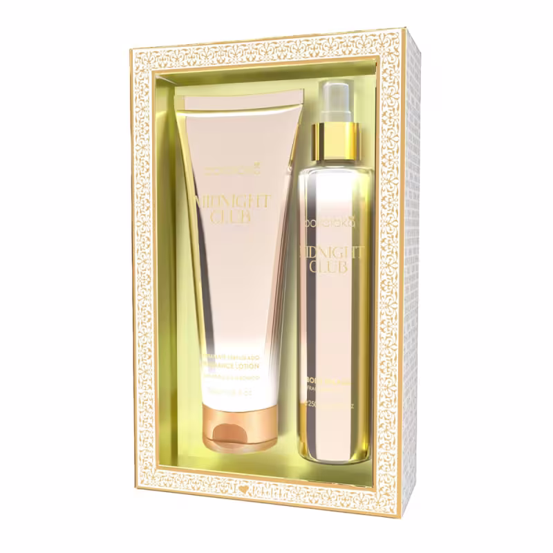 O Kit Pokoloka Midnight Club Feminino - Body Splash 250ml + Hidratante Corporal 240ml entrega um ritual completo de cuidado e perfumação com uma fragrância floral frutada elegante e marcante. Perfeito para mulheres que gostam de aromas vivos, femininos e envolventes, oferecendo pele hidratada, macia e perfumada por horas.