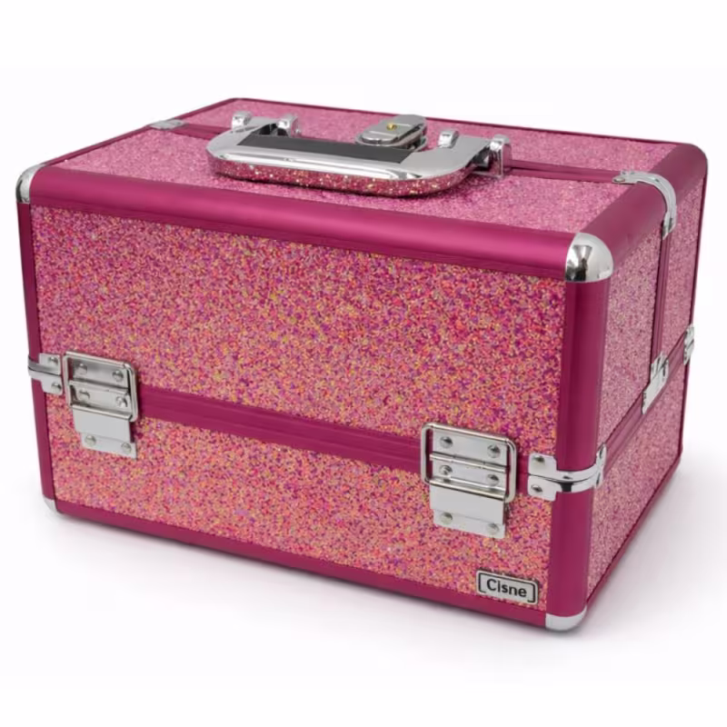 Maleta de Maquiagem Cisne Linha Shine Pink Glitter e Rosa com 3 Bandejas – CSN-5171B A
