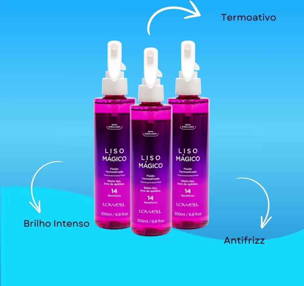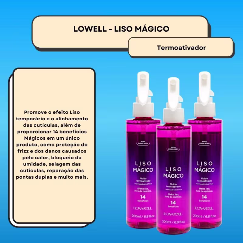 Lowell Keeping Liss Liso Mágico proporciona diversos benefícios aos fios durante o uso do secador e da chapinha para um cabelo perfeito sem o uso de químicas!