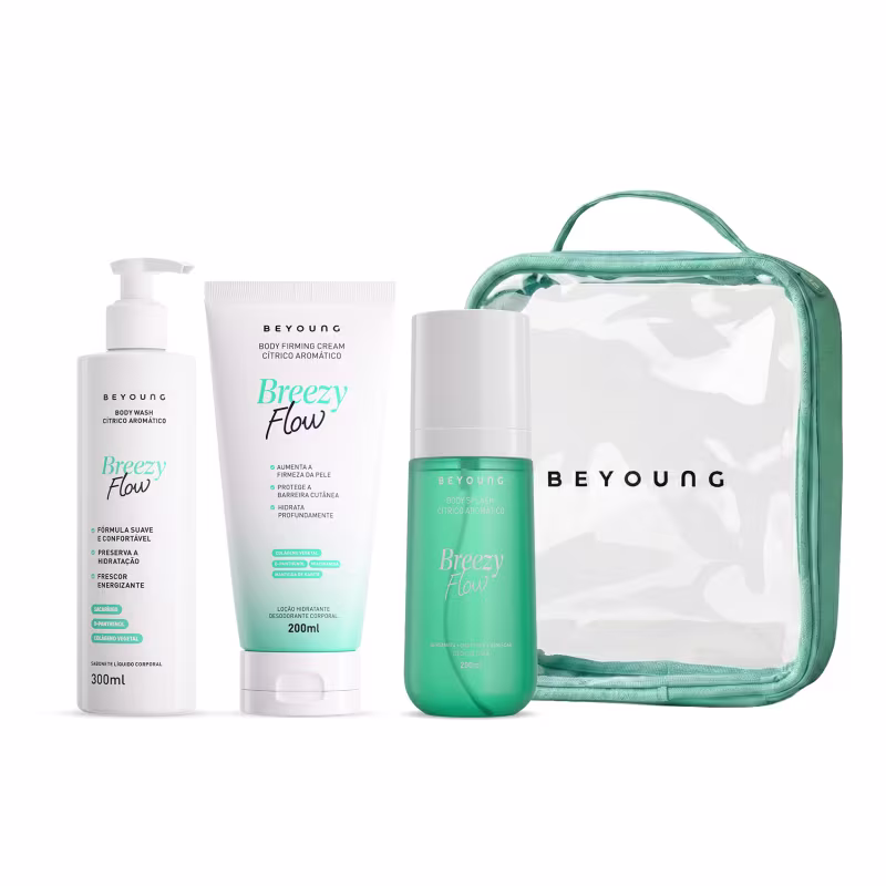 Kit Beyoung Linha Corporal Breezy Flow - 1 Body Splash + 1 Hidratante + 1 Sabonete Líquido + 1 Frasqueira Verde