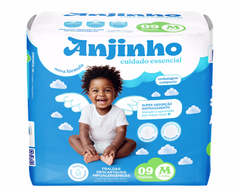 Não sei o CEPCom nova fórmula exclusiva, as Fraldas Descartáveis da Anjinho são o segredo para dias e noites mais tranquilas. A qualidade Anjinho que você já conhece em nova embalagem, garantindo conforto e até 6h de proteção para o seu bebê. Dermatologicamente testadas, elas contam com uma camada extra seca e barreira protetora antivazamento. Além disso sua cobertura suave garante menos trocas e máxima absorção, mantendo a pele sequinha e arejada por muito mais tempo.