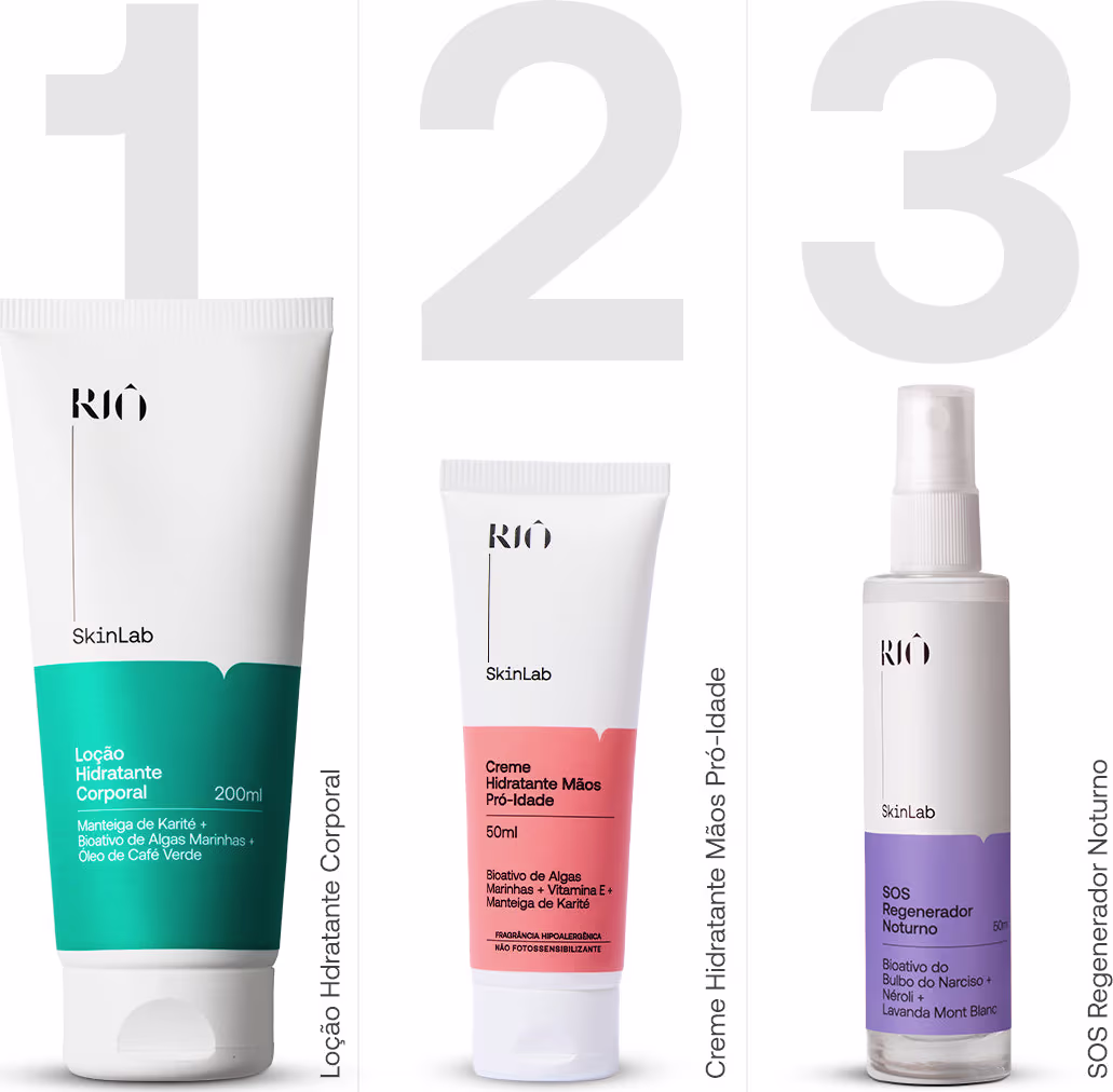 A Riô SkinLab é uma marca de dermocosméticos de altíssimo desempenho e sensorial incrível. Cada produto incorpora o que existe de mais avançado, eficaz e seguro na ciência mundial em fórmulas especificamente desenvolvidas para o estilo de vida e necessidades das peles brasileiras e exigentes. Todos os produtos da Riô SkinLab são desenvolvidos no Brasil, por formuladores que acompanham a constante evolução do conhecimento científico e médicos que sabem as reais demandas da nossa pele. A marca tem responsabilidade socioambiental e as iniciativas são reais e reconhecidas pelo impacto positivo que geram: sendo uma Empresa B; neutralizando a pegada de carbono desde a fabricação dos produtos até a entrega para os consumidores; com parceria com eureciclo; maximizando o uso de ingredientes biodegradáveis e não realizando testes em animais.