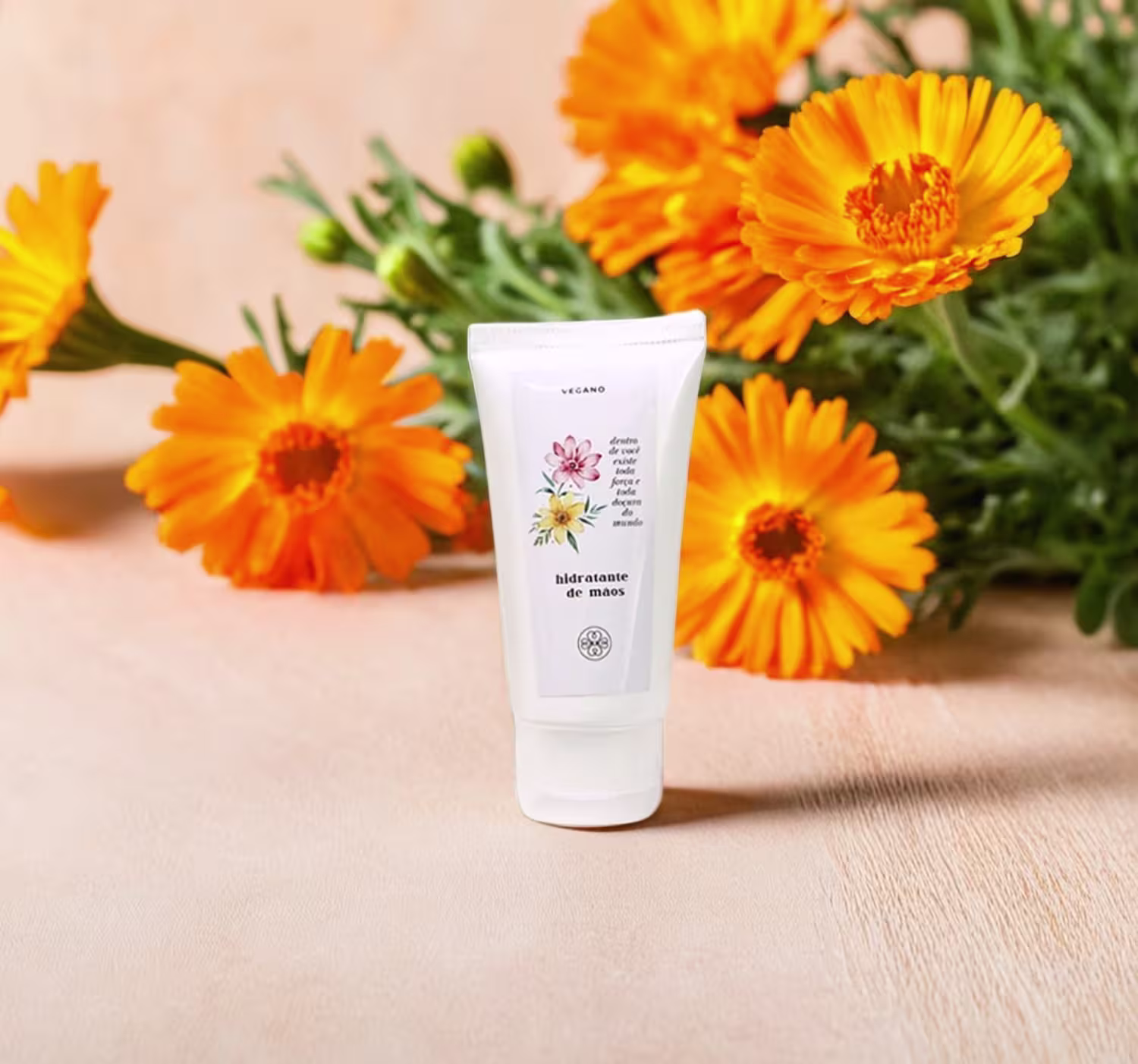 Hidratante para Mãos Calêndula 60ml: Hidratação Rápida + Toque Macio Sem Oleosidade | Flora Vie